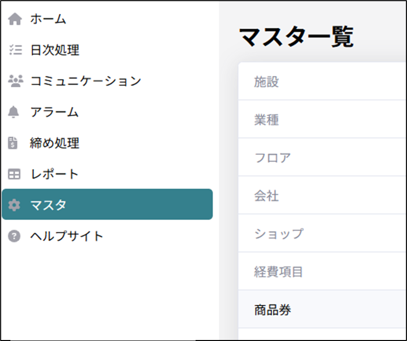①「MENU」-「マスタ」「商品券」をクリックします。
