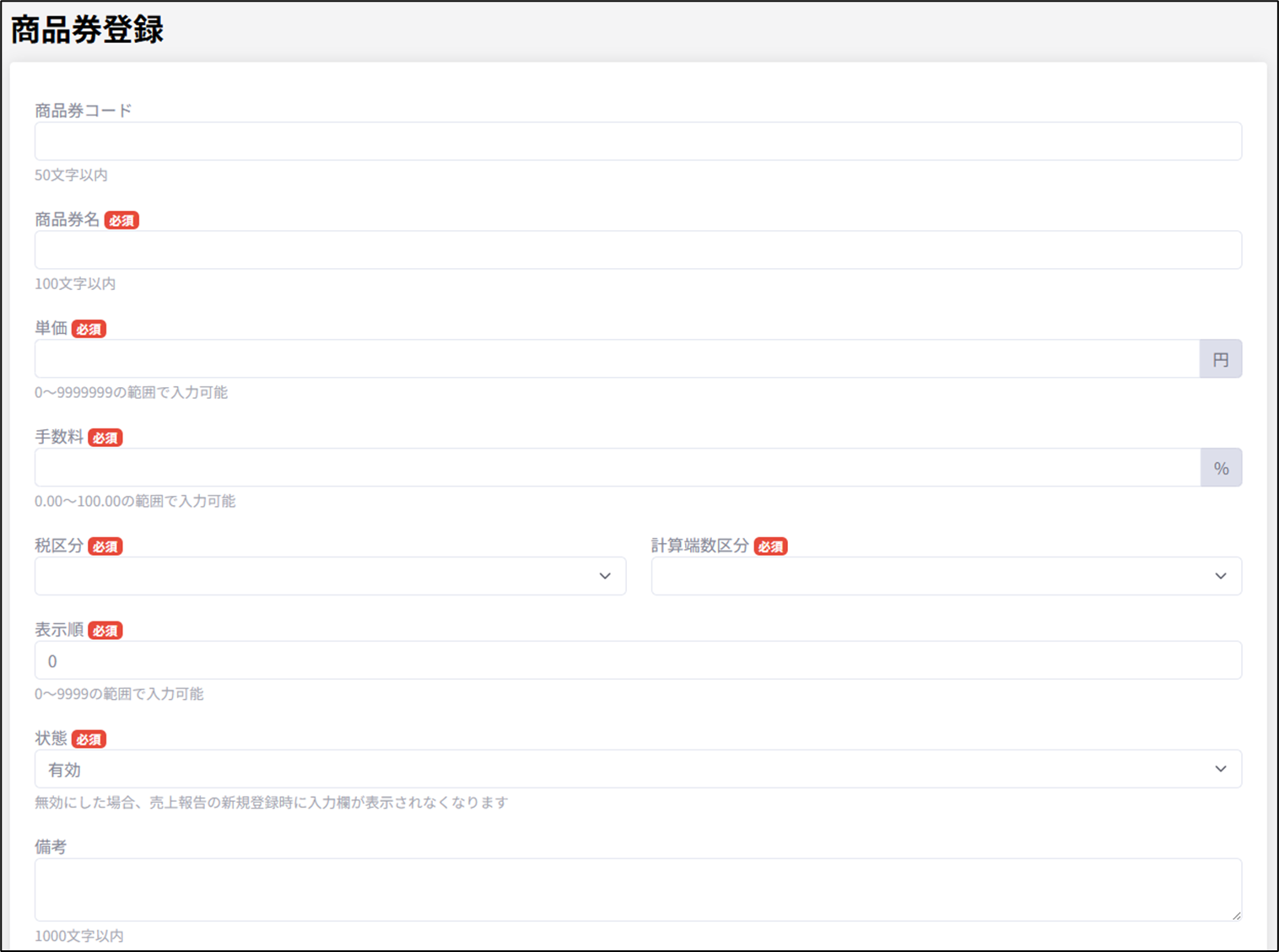 施設独自の商品券がある場合、商品券情報を登録できます。