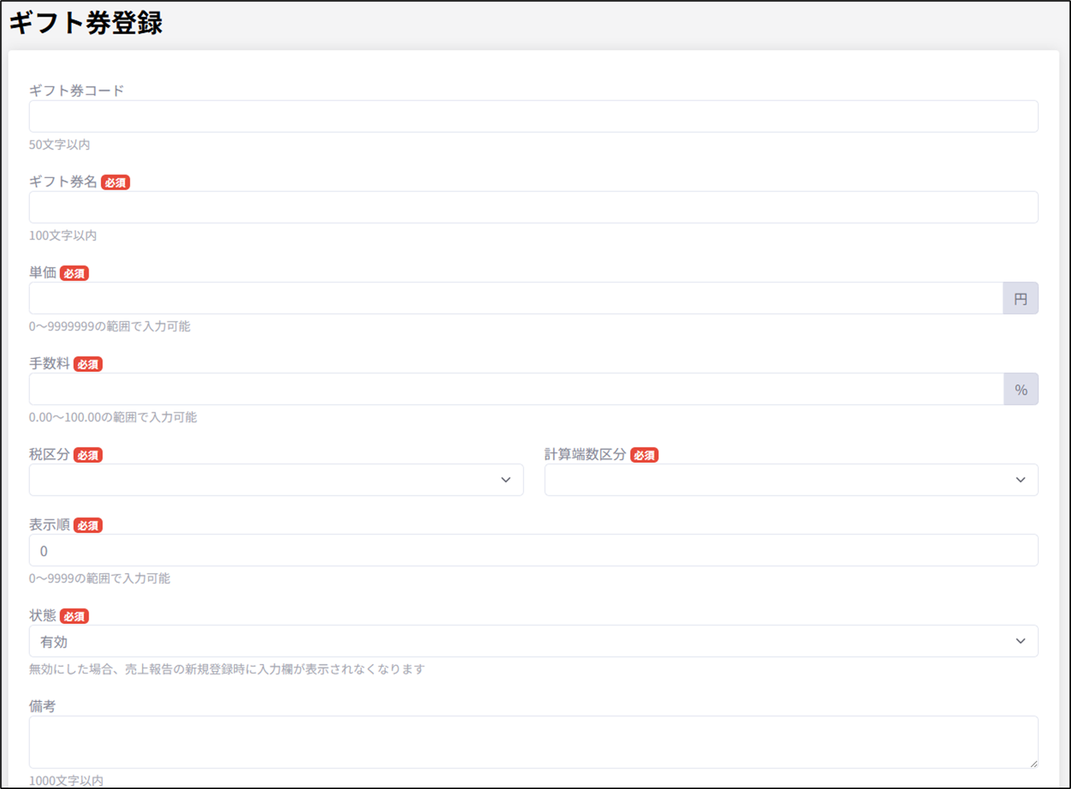 施設でギフト券が利用可能な場合、ギフト券情報を登録できます。