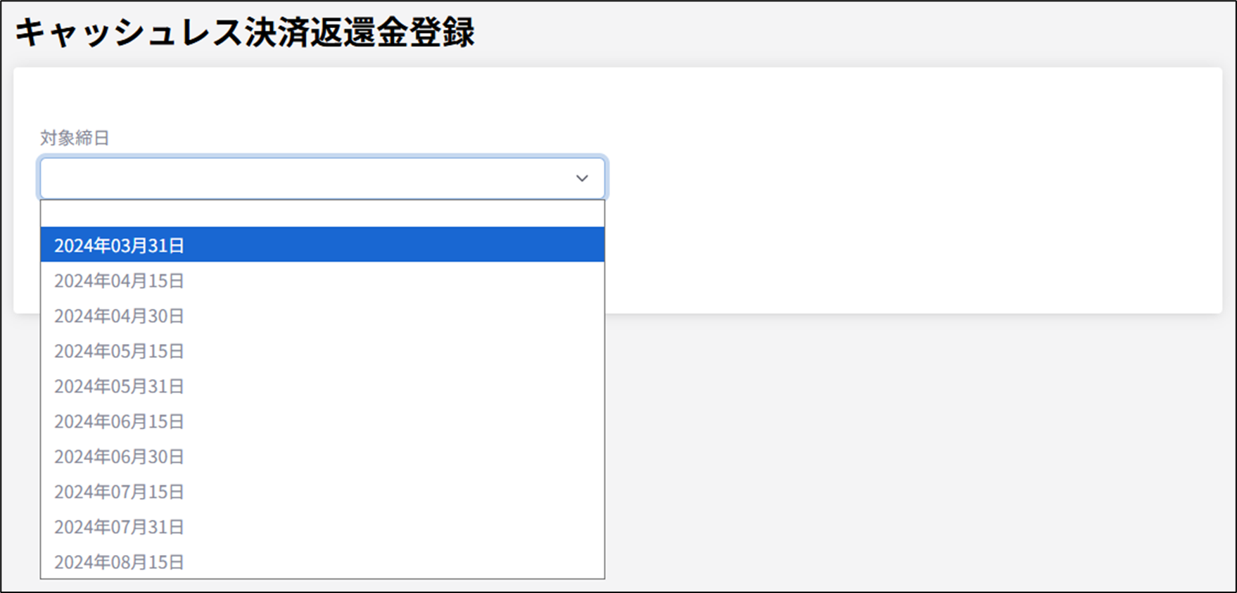 ③対象締日を選択すると、項目の入力画面が表示されます。