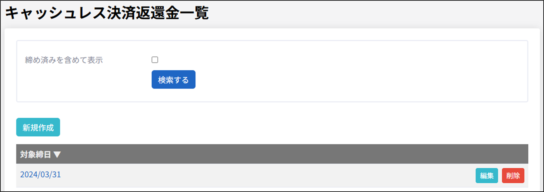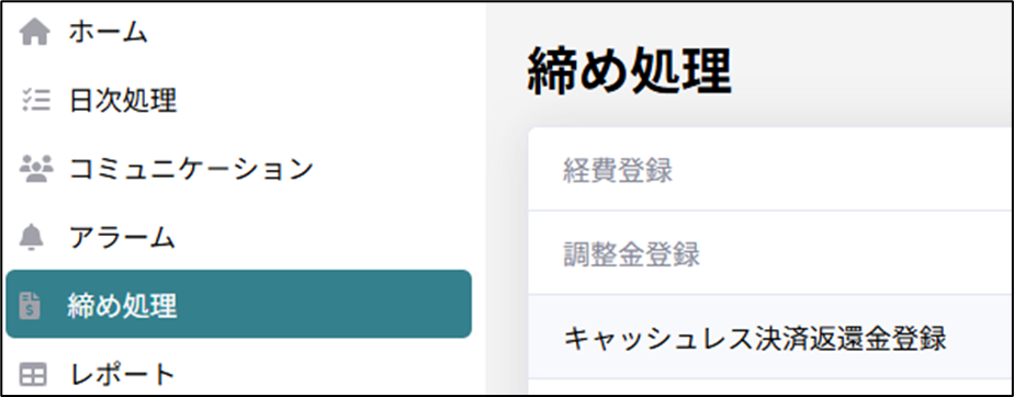 ①「MENU」-「キャッシュレス返還金一覧」の画面上に締日ごとに登録している各項目が表示されます。