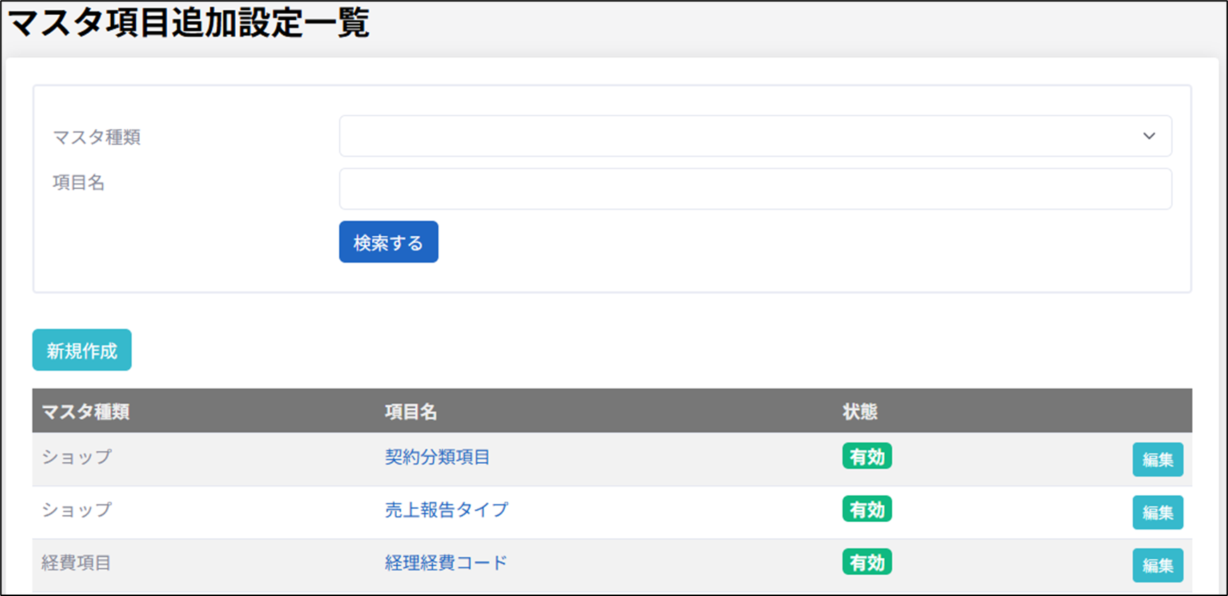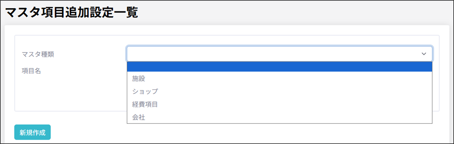 新たに項目追加したい場合は、「新規作成」をクリックします。