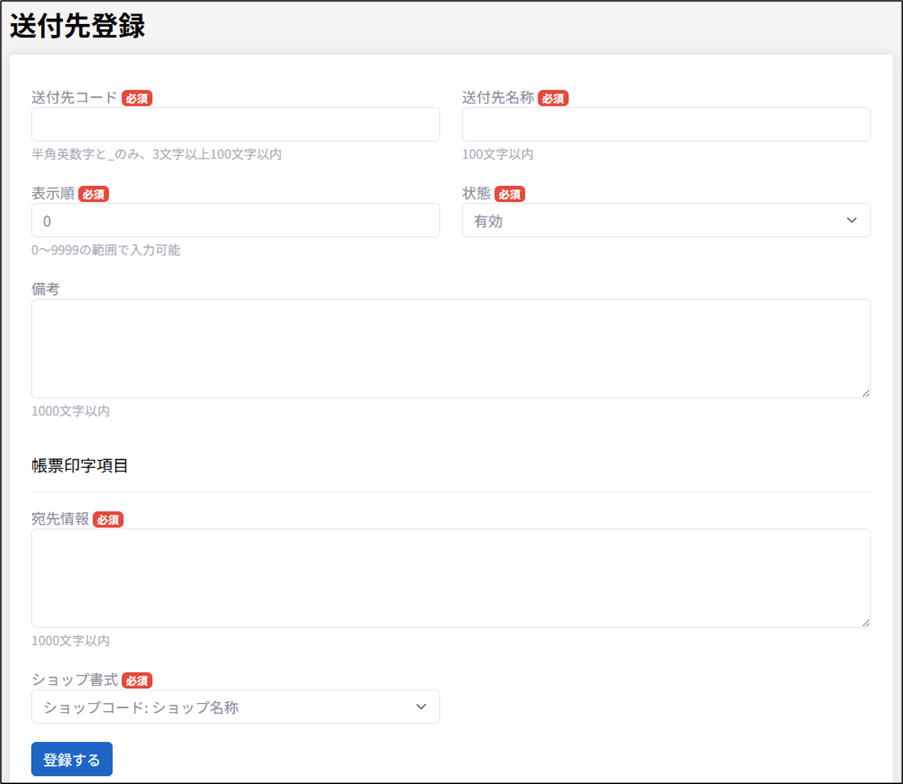 請求書・精算書の印字でショップコード、ショップ名称、なしの選択が可能です。